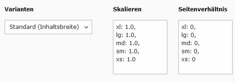 Um mehere Bilder mit dem selben Seitenverhältnis auszugeben, kann dieses über ein separates Feld definiert werden. Dies ist speziell bei der Ausgabe von Bildern eines Ordners nützlich, wenn die enthaltenen Bilder verschiedene Seitenverhältnisse aufweisen.